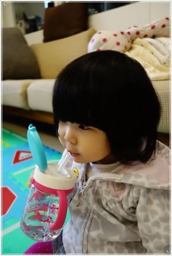 只是妹妹現在還在玩水階段,每次喝水都搞到衣服溼地板濕的....