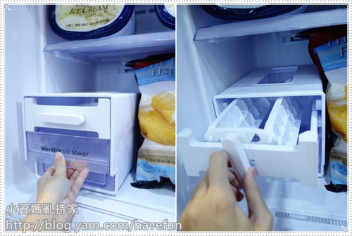 為了讓冷凍庫空間能夠多樣運用,製冰盒也設計成可移動的若是冷凍庫改成冷藏模式,或者希望使用冷凍庫最大化,製冰盒可以移出或改放置下層空間