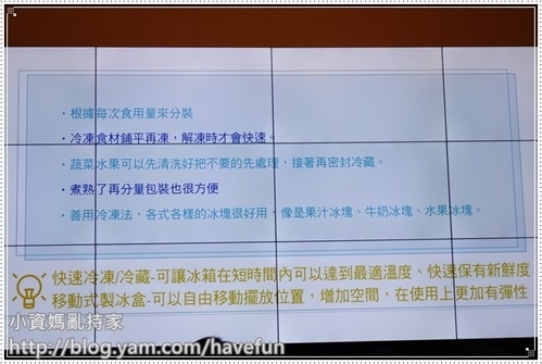(所以聽到這裡忍不住覺得,應該要增加一個"最大冷凍"的彈性設定才對,因為什麼食材都要冷凍分裝阿XD)