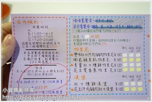 這邊提供的輕食選擇相當多,套餐名字也很可愛,有朵朵套餐跟喵喵套餐