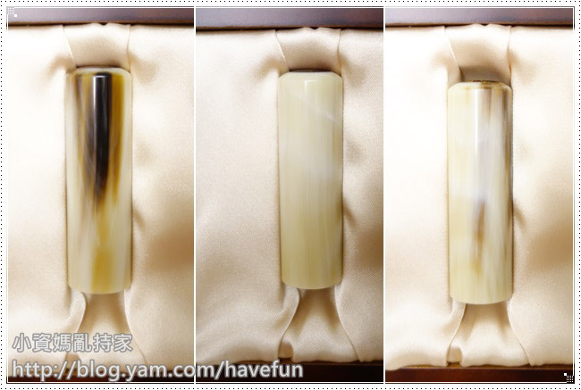 因為妹妹皮膚白,頭髮又多又黑,所以印章我挑選底色是比較白皙的,然後帶一條黑紋,像她的頭髮