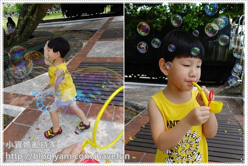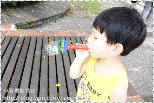 結果兩個抓不準一起開始的時間,我自己吹到快斷氣了,泡泡還沒斷,還沒換下一次XD