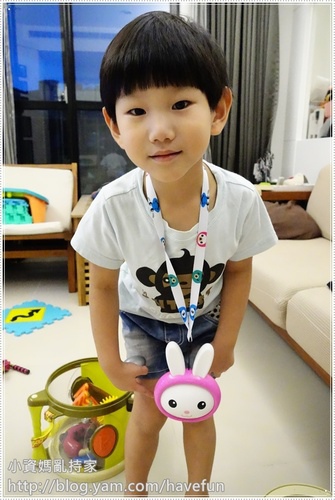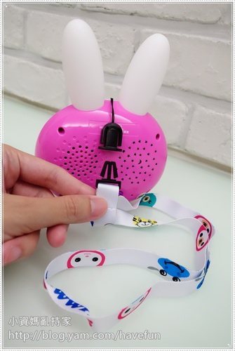 插上掛繩後,就可以掛在小朋友的脖子上,走到哪聽到哪