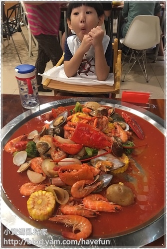 五大兩小點店家推薦的海鮮桶餐,看份量感覺有點少....