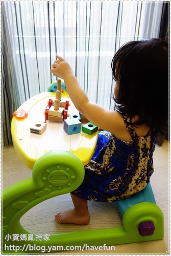 而且她不如我之前想的"只會黏著奶不自己玩",有小桌子以後,她真的很會自己找事做!