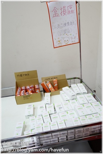 在最後一排靠左,盒損品都是看標籤,價格不太一樣